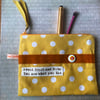 A zippered pouch that takes care of all those small things that hide in bottom of your bag. PERFECT for make-up, pens, lip balm, stray earrings or receipts.