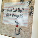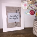 This is a mounted print taken from a freehand embroidery applique picture using vintage fabrics and stitched lines.